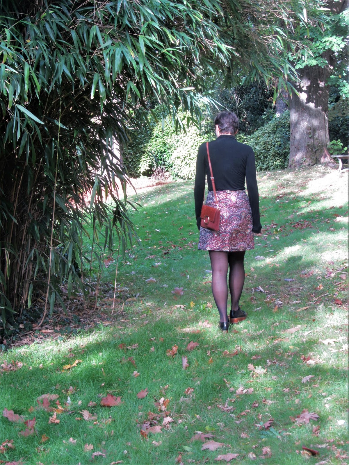 tym razem nie było żadnych wykrojów. żadnego szperania w burdach czy internetach. spódnica praktycznie uszyła się sama. zebrałam kilka wymiarów (talia, biodra, długość). przygotowałam zaszewki na pupie (bardzo na oko). wszyłam zamek, guzik i robota skończona. rach ciach i po sprawie. szybko i efektownie. minimalistycznemu krojowi energii dodaje materiał. miłość od pierwszego wejrzenia. te kolory! ten motyw! brałam od razu. ociągałam się jedynie z jej założeniem. z niewiadomych powodów czekałam na jesień. na lekkie golfy. na przejściowe buty. jeszcze nie czapki ale już szaliki. i voilà! doczekałam się. za oknem jest pięknie kolorowo. liście rdzewieją. a ja śmigam w mojej trapezowej spódnicy, butach na drewnianej koturnie i planuję kolejne projekty inspirowane serialem that '70s show, jane birkin lub mia farrow.